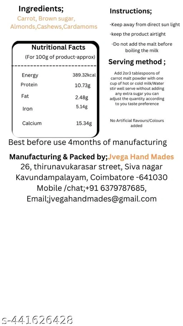 JVEGA Carrot Malt Powder