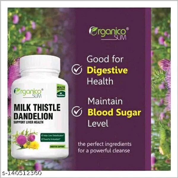 Name: Organicoslim Milk Thistle Liver Detox Supplement |Silymarin with Dandelion Enriched With Powerful Antioxidants| Promotes Healthy Liver Function for Men & Women - 60 Capsules
