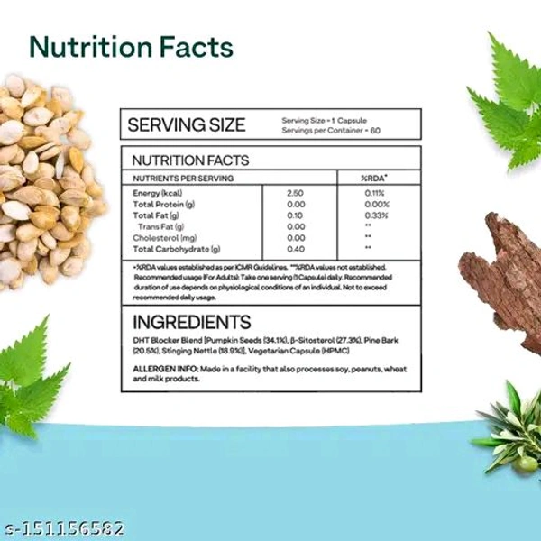 Name: OZiva Plant Based DHT Blocker | Helps Controls Hairfall & Stimulates Follicles | Vegan (60 Capsules)