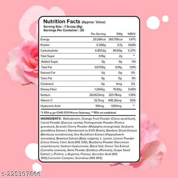 SKIN APPRECIATED INGREDIENTS: Made with premium wholefood, the collagen supplement is infused with Sea Buckthorn, Acerola, Bamboo Shoots, Vitamin C along with Hyaluronic Acid. Altogether, this powerful blend revives the skin and its elasticity by stimulating collagen production. When collagen levels are high in the body, the skin flaunts younger and radiant appeal.