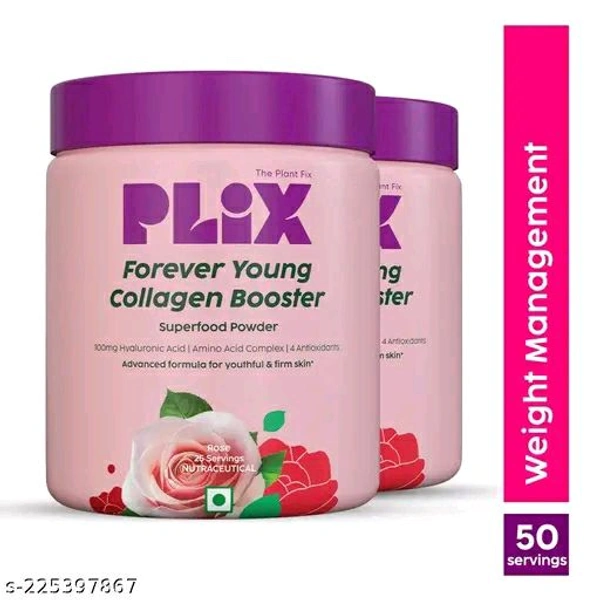 Name: PLIX Collagen Supplement Powder to support Skin Elasticity, Firmness & Youthful Glow | 100 %Plant-based with Hyaluronic Acid & Vitamin C | For Women & Men | Rose Flavour, Pack of 2