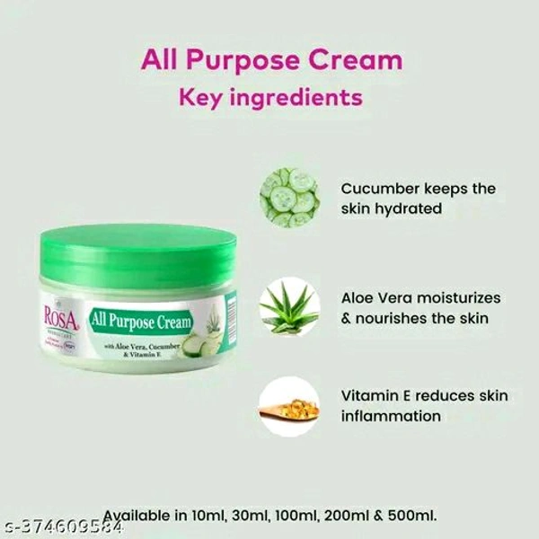 Perfect for busy individuals who want a simple yet effective skincare solution, the Rosa All Purpose Cream is your answer to healthy, glowing skin. The lightweight formula